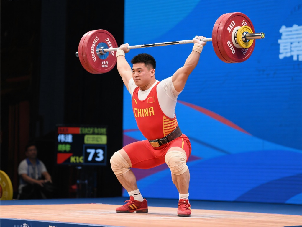 刘伟健在举重男子73公斤级摘得双金的辉煌时刻 在国际举重赛场上,中国选手再次展现了强大的实力!刘伟健以出色的表现,在男子73公斤级比赛中一举夺得两枚金牌,为国家争光。这不仅是一场个人荣誉的胜利,更是